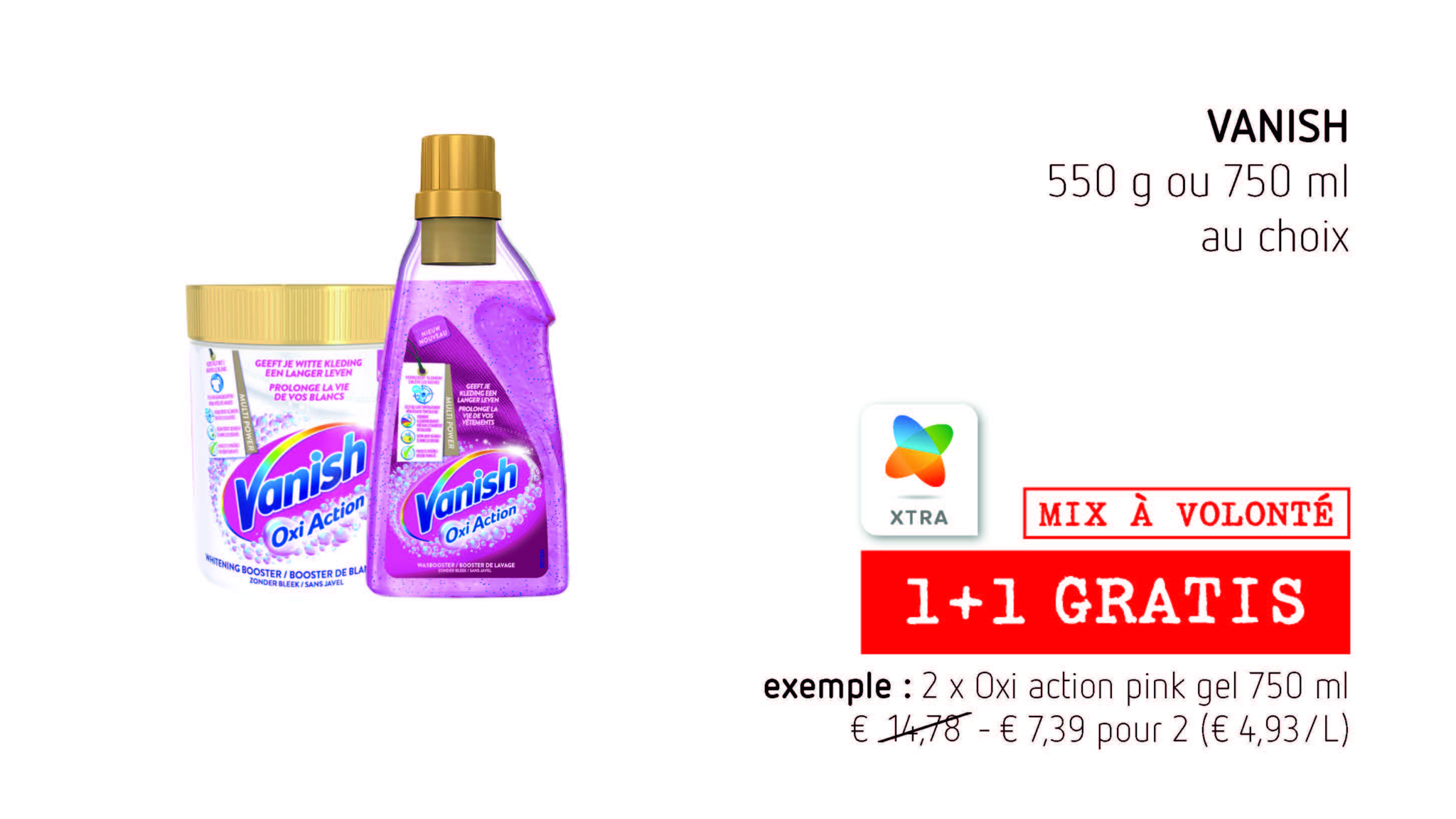 Grâce à nos cartes de rayon, vous pouvez choisir de ne mettre votre produit ou votre marque en promotion qu’en magasin. Elles remplacent nos actuels Bons-on-shelf. Le client ne doit plus déchirer de bons, la réduction est octroyée automatiquement sur présentation de la carte/app Xtra. De plus, ces cartes ressortent mieux dans l’image du magasin.